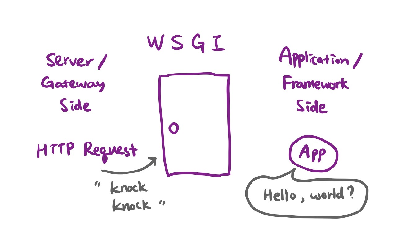 공식 문서에서는 WSGI를 "simple and universal interface between web servers and web applications or frameworks"라고 설명하고 있으며, WSGI의 목적은 "to facilitate easy interconnection of existing servers and applications or frameworks, not to create a new web framework"라고 서술하고 있다.